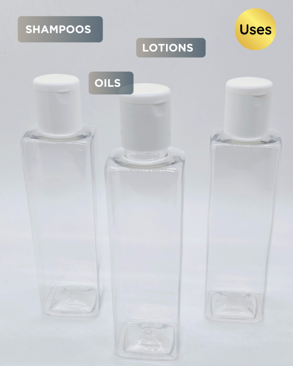 200ml Square Transparent Bottle with White Flip-Top Cap