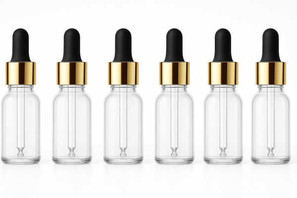 5ml Transparent Dropper Bottle, a professional-grade packaging solution designed for skincare formulators, essential oil creators, and beauty brands looking for a sleek and luxurious presentation. This bottle features a crystal-clear body that showcases your serum or formulation perfectly, while the golden metallic cap and black rubber teat add a premium, elegant aesthetic preferred by high-end skincare lines.